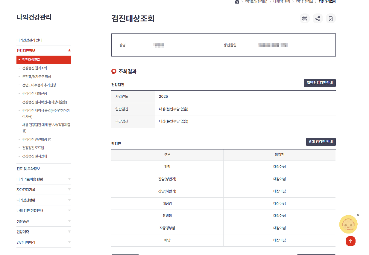 검진 대상자는 출생 연도에 따라 결정됩니다. 짝수 연도에 태어나신 분들은 짝수 해에, 홀수 연도에 태어나신 분들은 홀수 해에 검진 대상이 됩니다. 예를 들어, 1965년생은 2025년에 검진 대상이 됩니다. 정확한 대상자 여부는 국민건강보험공단 홈페이지에서 확인할 수 있습니다.