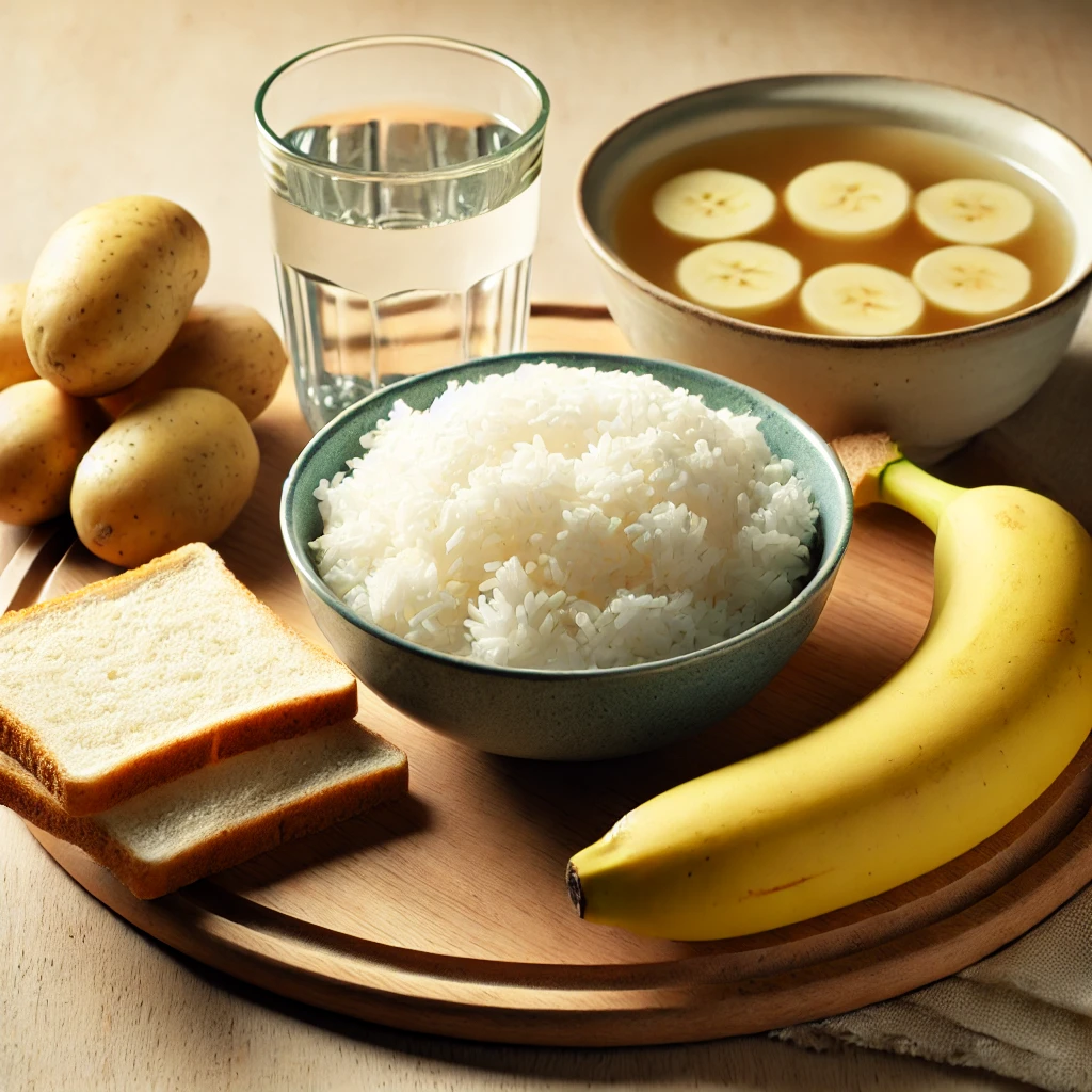 흰 쌀밥은 소화가 잘 되고 장에 부담을 주지 않는 대표적인 음식입니다. 설사를 할 때는 섬유질 함량이 높은 잡곡밥보다는 흰 쌀밥이 적합합니다. 쌀은 탄수화물로 에너지를 보충해주며, 위와 장의 점막을 보호하는 역할을 합니다.