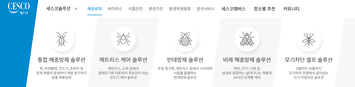 세스코는 1976년에 설립되어 해충 방제, 식품 안전, 공기질 관리 등 다양한 분야에서 서비스를 제공하는 종합 환경 위생 기업입니다. 특히 바퀴벌레, 쥐, 개미 등 해충 방제 분야에서 오랜 경험과 전문성을 보유하고 있으며, 과학적인 관리 방법을 통해 고객의 쾌적한 생활 환경을 조성하는 데 주력하고 있습니다.