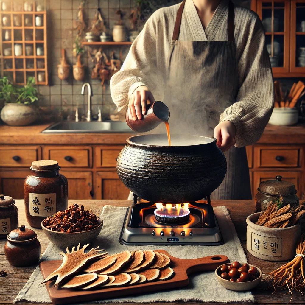 💡 주의: 알루미늄이나 스테인리스 용기를 사용하면 약효가 감소할 수 있으니 도자기 약탕기를 사용하는 것이 좋습니다.