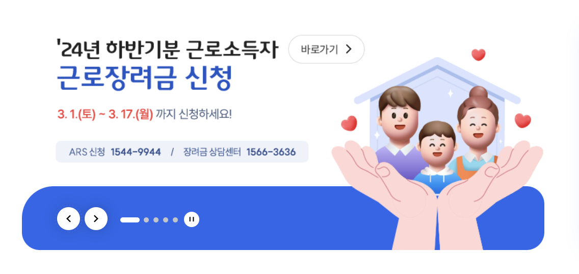 - 로그인 후 "근로장려금 신청하기" 클릭